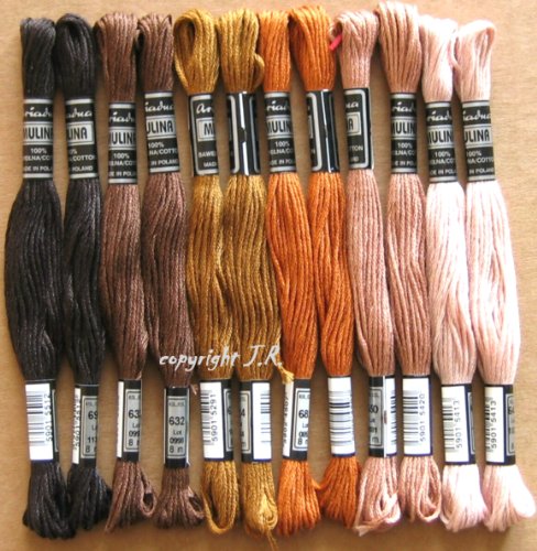 @@@ BRAUN-Sortierung @@@ Besonders gut teilbarer Twist von einem europäischen Hersteller. Sie erhalten 12 Döckchen in 6 Farben (wie auf dem Bild) mit jeweils 8 Meter Das Baumwollgarn ist 6-fädig + merzerisiert + farbecht und bis 95° C waschbar !