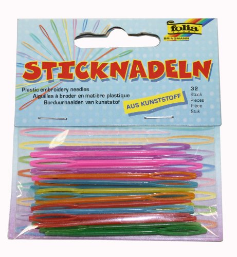 Folia 2399 - Sticknadeln aus Kunststoff (PP), circa 6,5cm x 1,8mm, 32 Stück, farbig sortiert