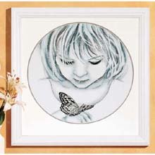 Stickbild "Kleines Mädchen" - von RTO Handarbeitspackung, zum Selberfertigen mit Grundstoff Aida 14 (100 % Baumwolle), ohne Rahmen, mit Stickmaterial, Anleitung russisch/englisch, Nadel, Handwäsche, bügeln Stufe 2 . Es handelt sich um ein Qualitätsprodukt aus Russland. Bildgröße: 32x32 cm