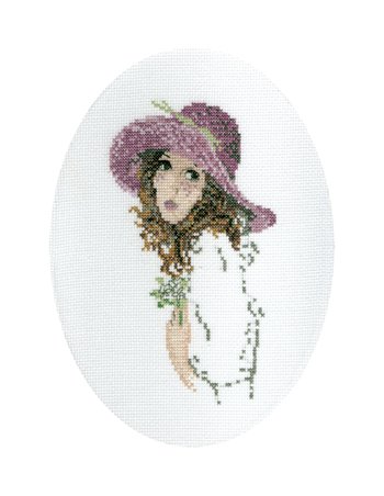 Stickbild Serie "Damen Retro" - von RTO Handarbeitspackung, zum Selberfertigen mit Grundstoff Aida 14 (100 % Baumwolle), ohne Rahmen, mit Stickmaterial, Anleitung russisch/englisch, Nadel, Handwäsche, bügeln Stufe 2 . Es handelt sich um ein Qualitätsprodukt aus Russland. Bildgröße: 9x14 cm