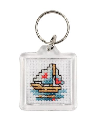 Stickbild mit Schlüsselanhänger von RTO Handarbeitspackung, zum Selberfertigen mit Grundstoff Aida 14 (100 % Baumwolle), Stickvorlage auf dem Papier, ohne Rahmen, mit Stickmaterial, Anleitung russisch/englisch, Nadel, Handwäsche, bügeln Stufe 2 . Es handelt sich um ein Qualitätsprodukt aus Russland.