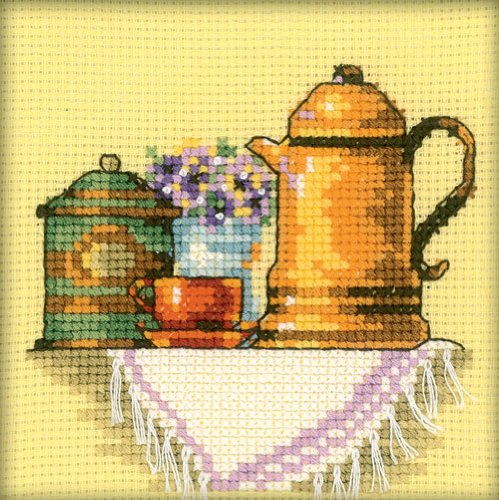 Stickbild von RTO Handarbeitspackung, zum Selberfertigen mit Grundstoff Aida 14 (100 % Baumwolle), Stickvorlage auf dem Papier, ohne Rahmen, mit Stickmaterial, Anleitung russisch/englisch, Nadel, Handwäsche, bügeln Stufe 2 . Es handelt sich um ein Qualitätsprodukt aus Russland. Bildgröße: 10x10 cm