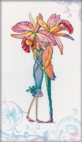 Stickbild "FLOWERS OF LOVE" - von RTO Handarbeitspackung, zum Selberfertigen mit Grundstoff (100 % Baumwolle), ohne Rahmen, mit Stickmaterial, Anleitung russisch/englisch, Nadel, Handwäsche, bügeln Stufe 2 . Es handelt sich um ein Qualitätsprodukt aus Russland. Bildgröße: 22x38 cm